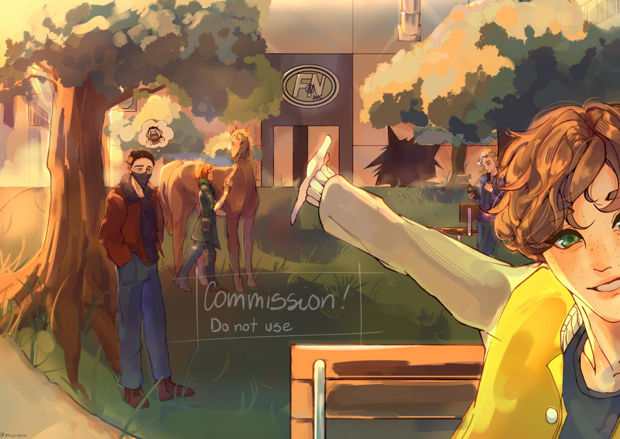 - Referências de personagem, pose e descrições detalhadas sobre a arte encomendada no geral são muito bem-vindas ao comissionar!